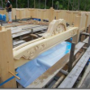 姫路市網干区 姫路市指定文化財 龍門寺庫裡現場から 庫裡大破風板修復の為、松丸太の製材を行いました。 地松丸太岩手山林より入材の大丸太です。