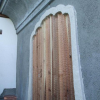 お寺行事の準備や片付け時に使います。屋根には杉皮、外壁には竹を使っています。内部は天井に杉皮、壁に腰ステンレス・杉板、床は桧スノコを使っています。