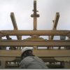 建設中の龍門寺隠寮に堂宮大工の小さな技で円成庇(大工の勝手な名付け)が取り付きました。 通常の庇とは違い、庇を丸く納め桁も丸く流れるように造っています 手間は掛かりましたがなかなか柔らかい仕上がりとなりました。