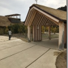 外の現場作業が滞るのが残念ですね。 雨の日は、作業場内は超満員状態です。 写真・・教専寺本堂 唐破風玄関木造り中・・