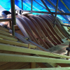 堂宮で重要な課程の一つに”原寸図”があります。 設計部にて書き上げた図面を元に実寸の寸法で描くものです。 この段階で堂宮の全ての寸法が決定され、その規矩に基づいて弟子達が加工に入ります。