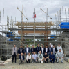弊社当主が上棟式の祝詞を挙げ、工事」の安全を祈願いたしました。参列者一同は緊張気味でした。